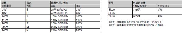 控制线圈电压及特性